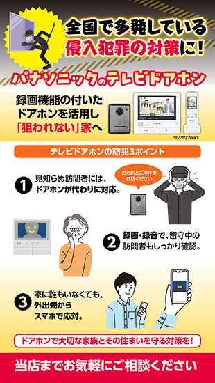 留守中の来訪者はもちろん、夜中の怪しい訪問者もしっかり録画してくれるから、安心感がケタ違い、セキュリティは大事です。